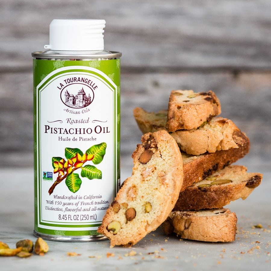 Biscotti med rostad pistageolja och vit choklad