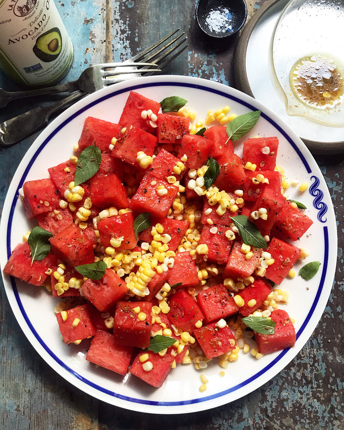 En somrig och fräsch sallad med söt vattenmelon, krispig majs och syrlig lime-vinägrett – perfekt till grillat eller som lätt lunch.