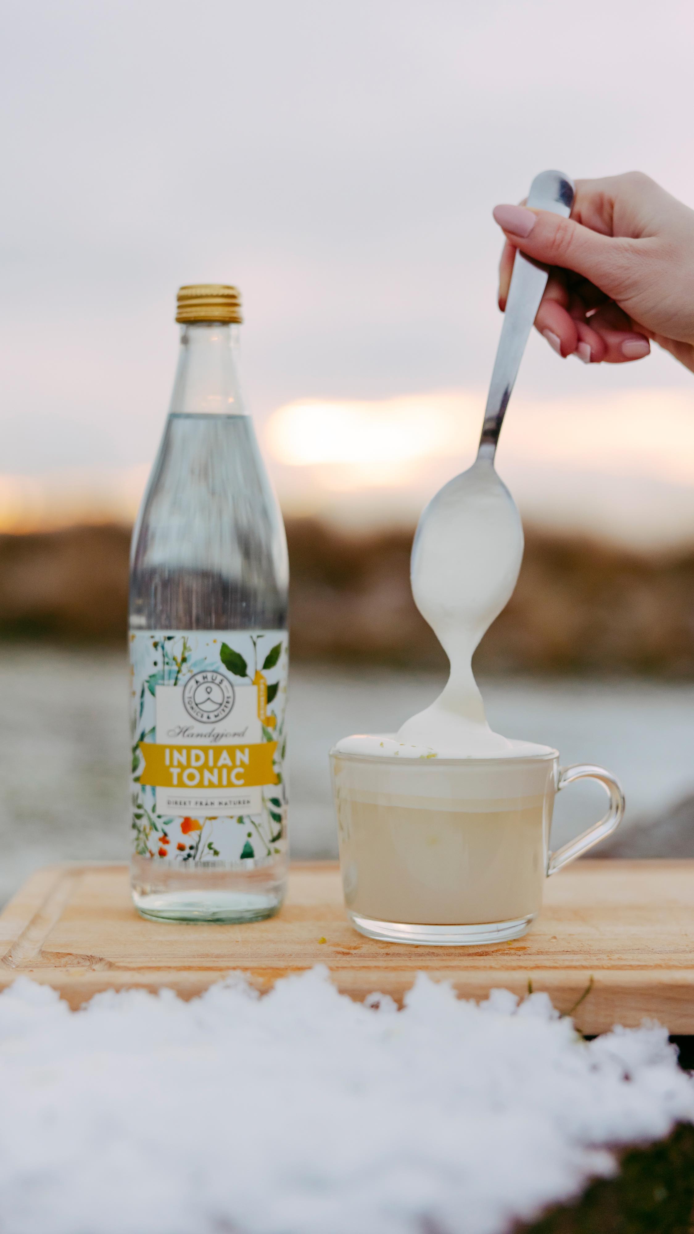 En värmande twist på gin & tonic med sötma och lätt gräddtopp.